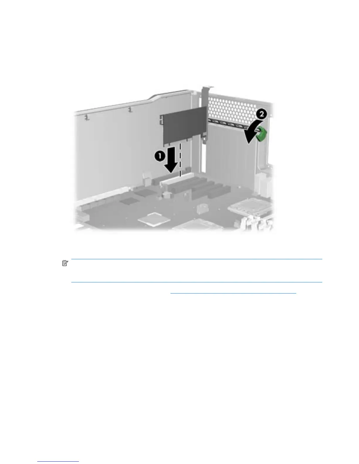 Align the PCI card keyway with the slot key, and then firmly seat the card in the slot as shown in