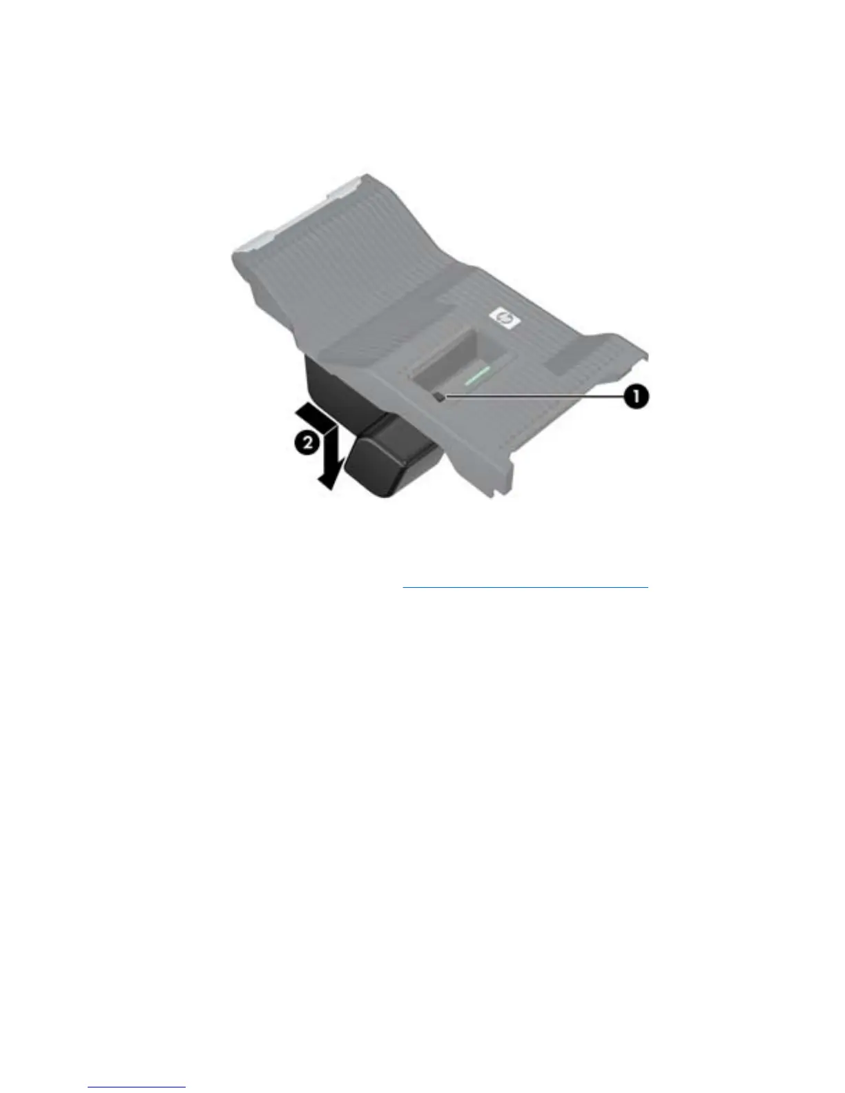 Press and hold the LCS air duct tab shown in the following figure (1).