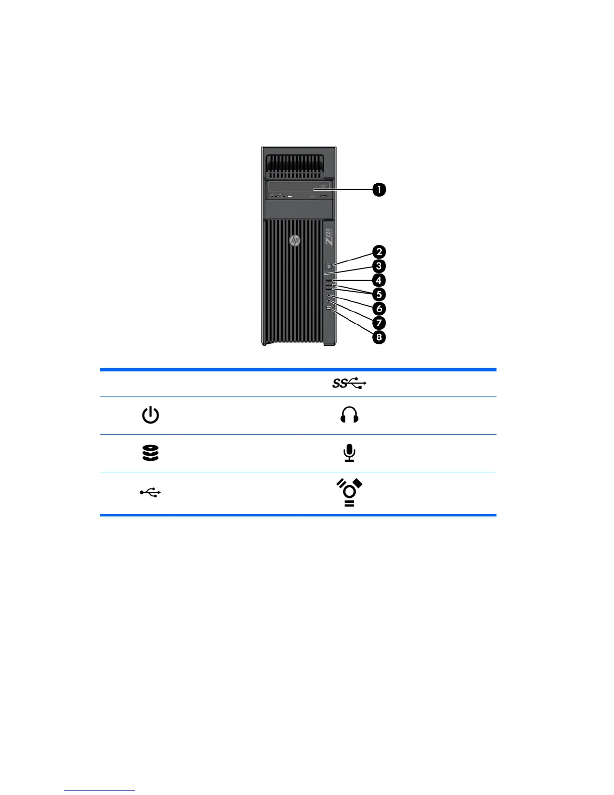 1 Optical drive 5 USB 3.0 ports (2, blue)