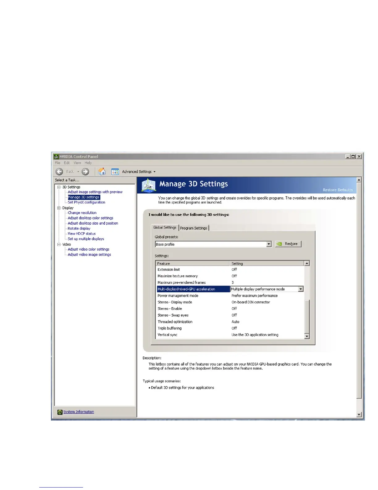 11. Stay in the “Manage 3D Settings” and “Base Profile” area