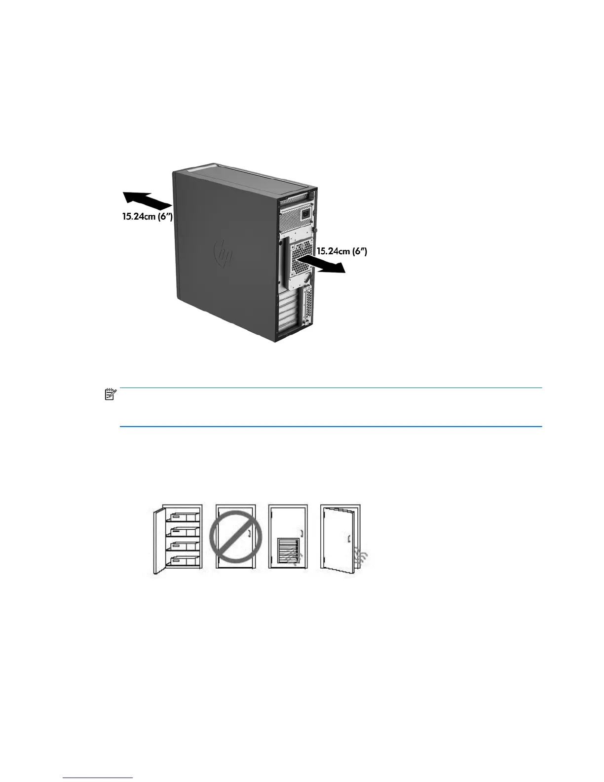 Provide at least 15.24 cm (6 inches) of clearance at the front and back of the workstation. (Workstation