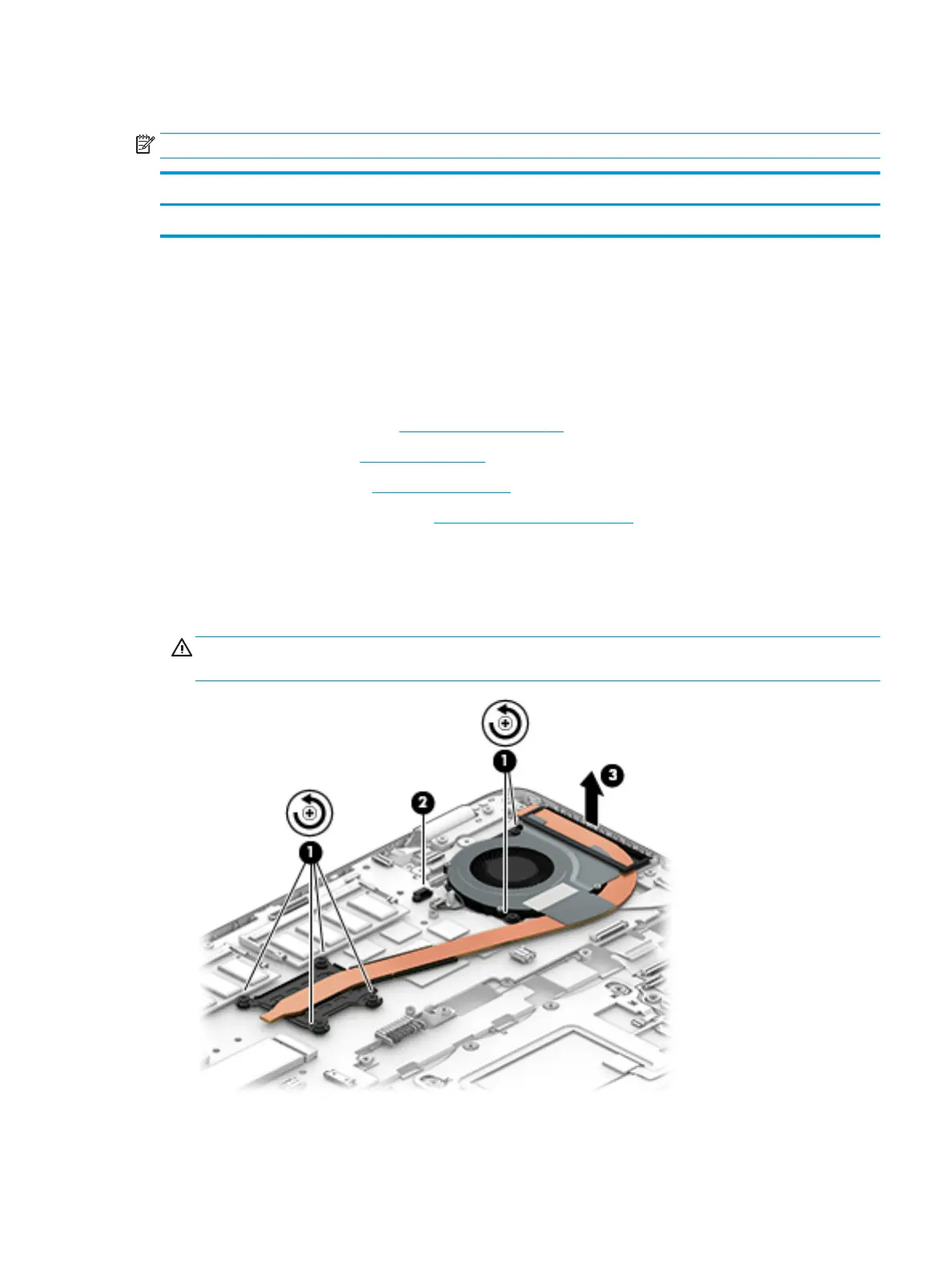 CAUTION: Take extreme care when removing the heat sink and fan assembly. The heatpipe is very