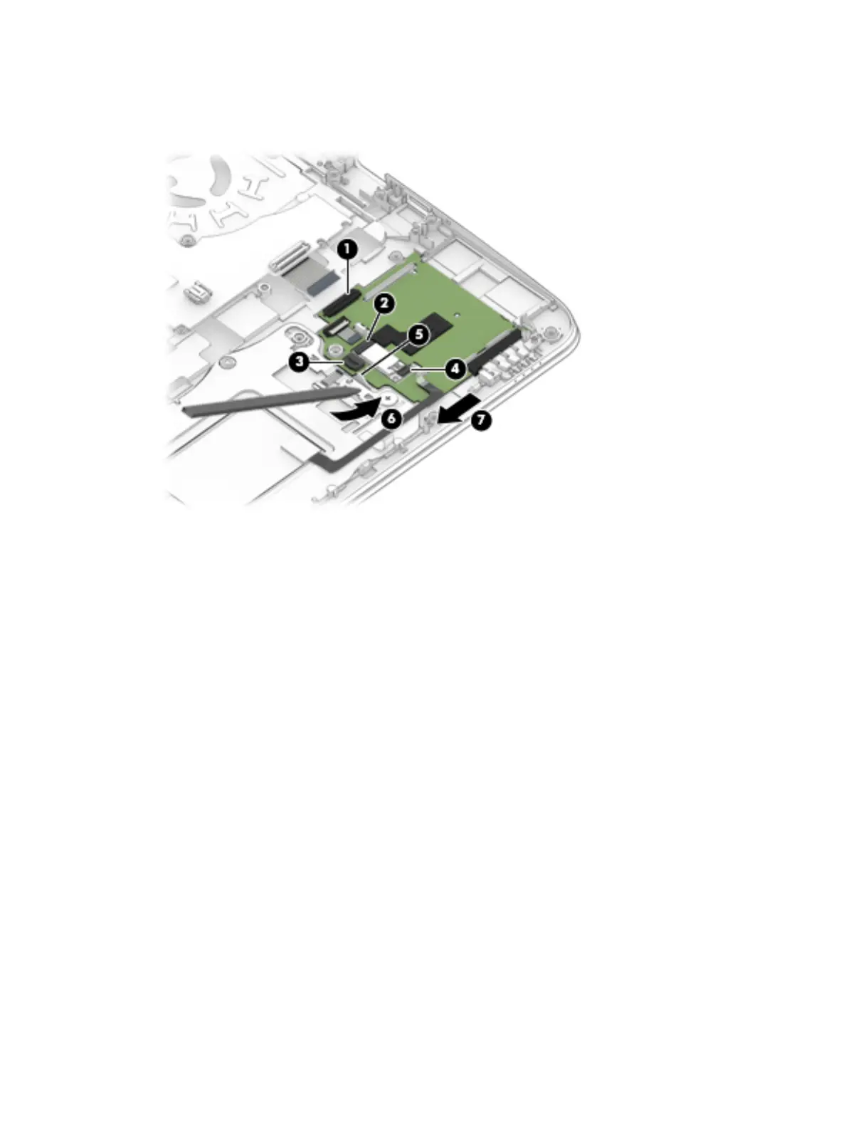 up the side of board (near touchpad) (6), and then pull the board away from the side of the computer to