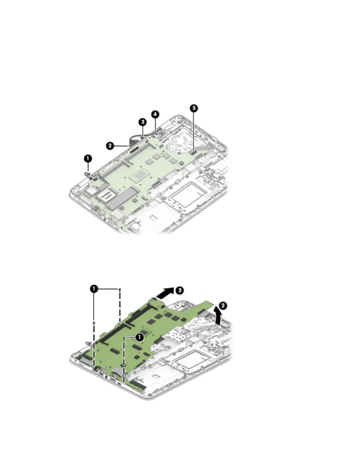 5. Remove the 3 Phillips M2.5×5.0 screws (1) that secure the system board to the computer.