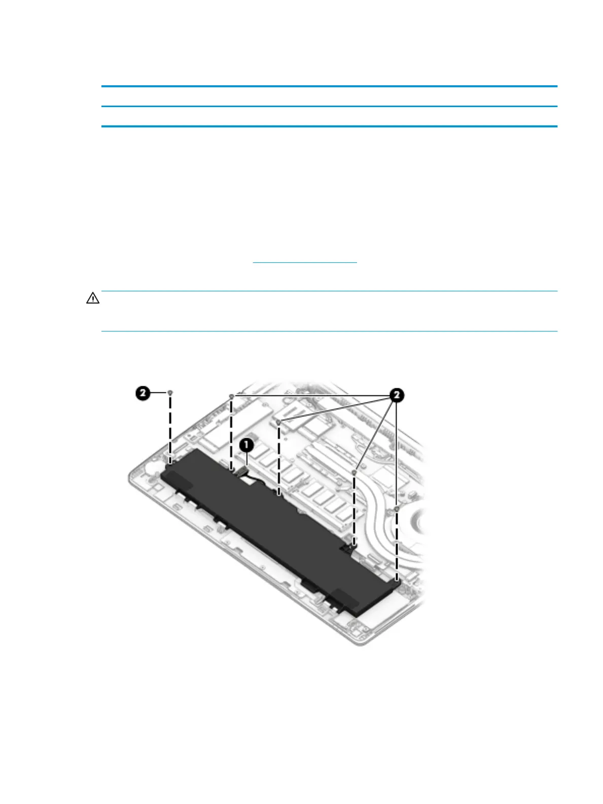 1. Disconnect the battery cable from the system board (1).