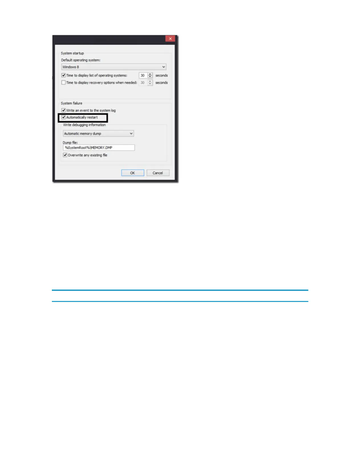 2. Select Disable automatic restart on system failure to view error messages.