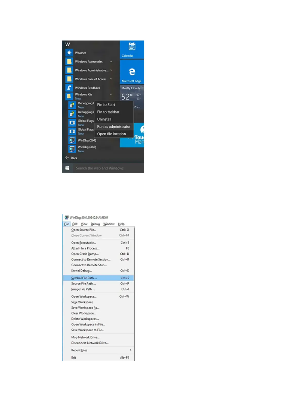 5. Set the symbol path. Select File > Symbol File Path.
