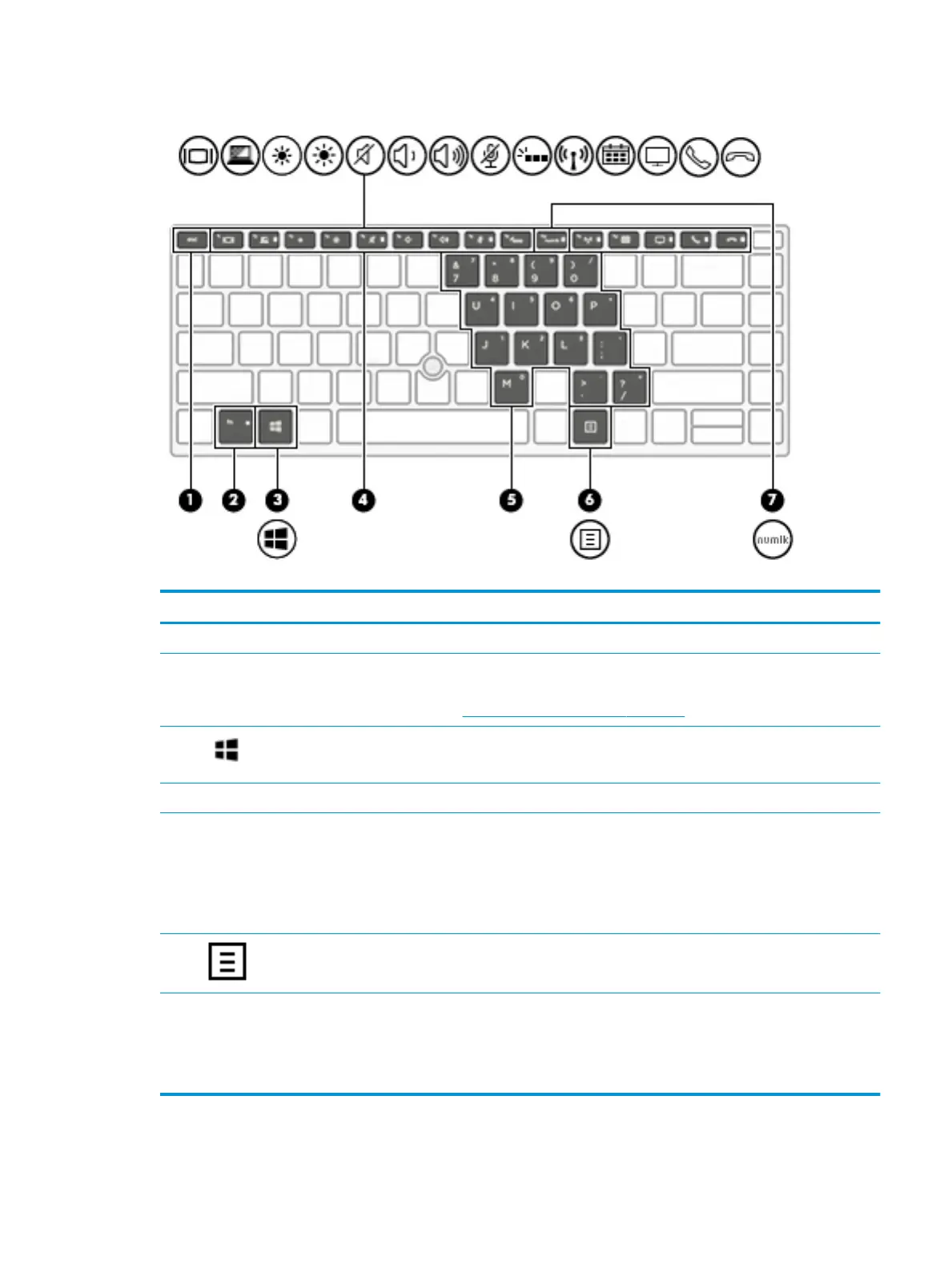 (7)   num lk key Turns the embedded numeric keypad on and o.