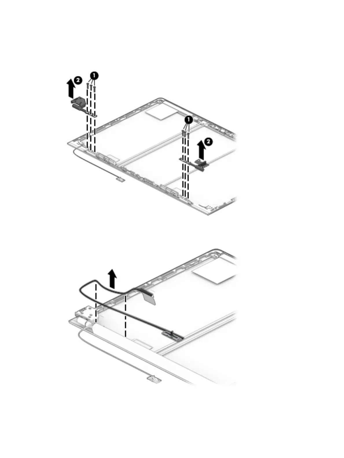 each hinge (1), and then remove the hinges from the display enclosure (2).