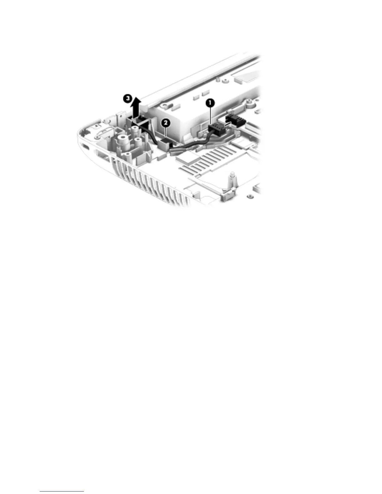3. Release the power connector (3) from the clips and mold built into the base enclosure.