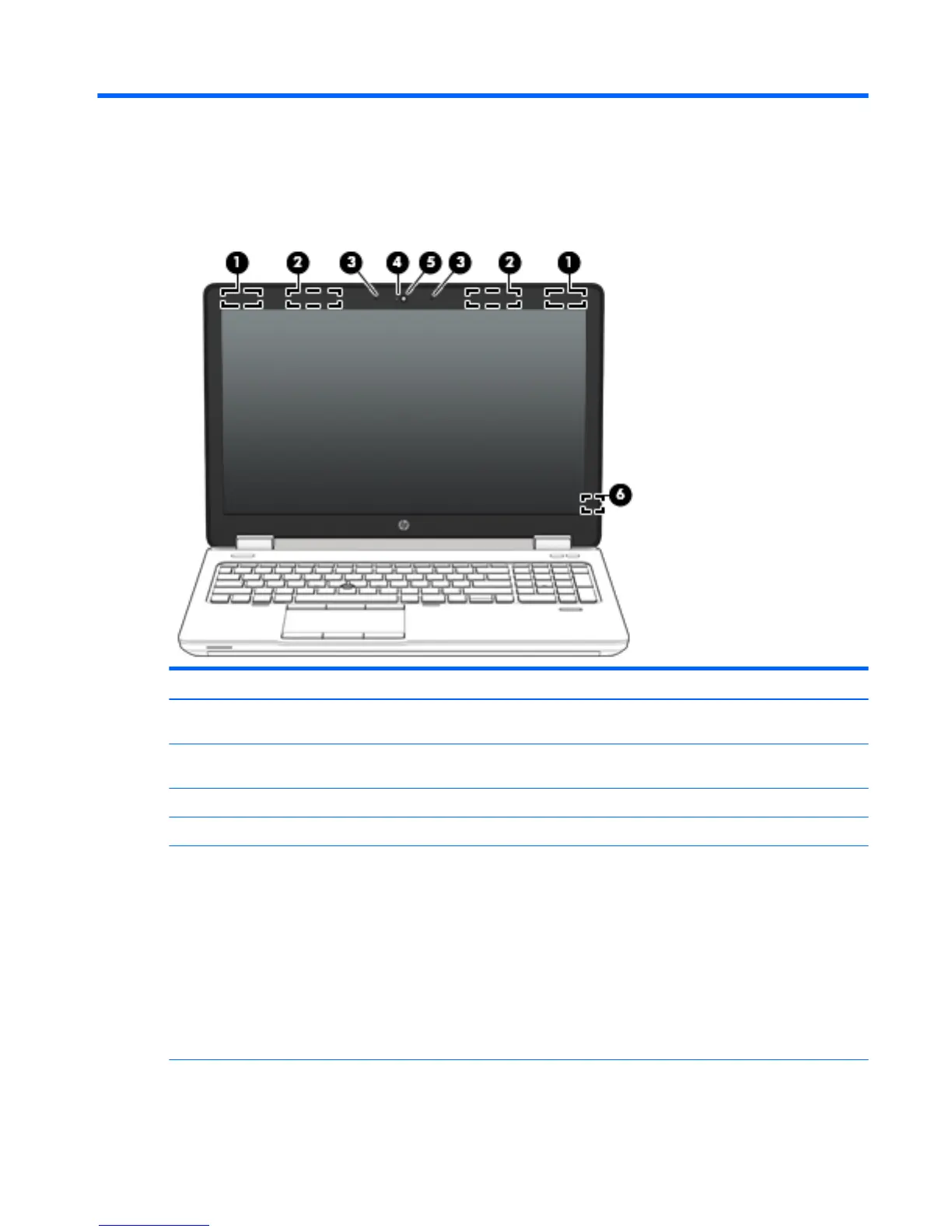 (2) WWAN antennas * (select models only) Send and receive wireless signals to communicate with wireless wide