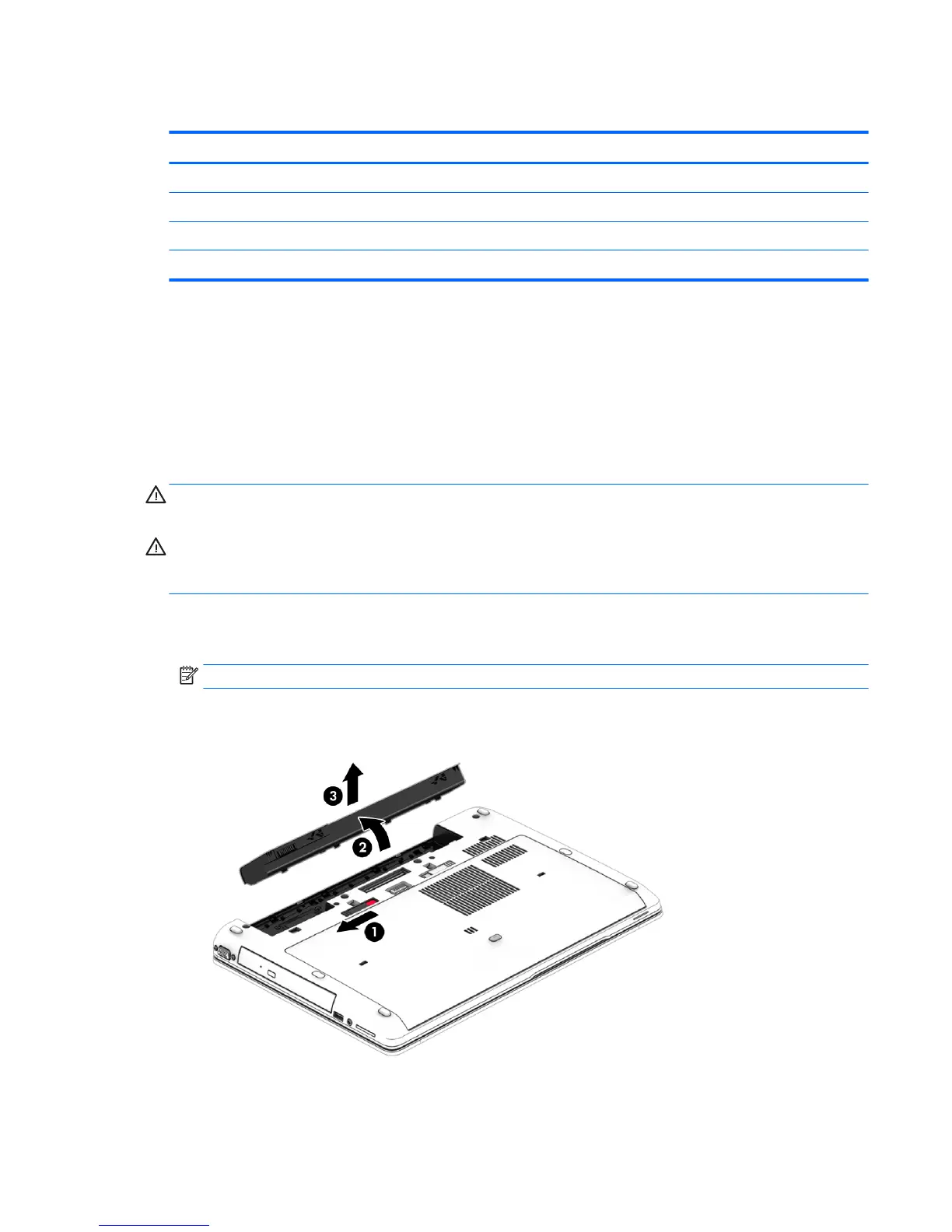 CAUTION: Removing a user-replaceable battery that is the sole power source for the computer can cause