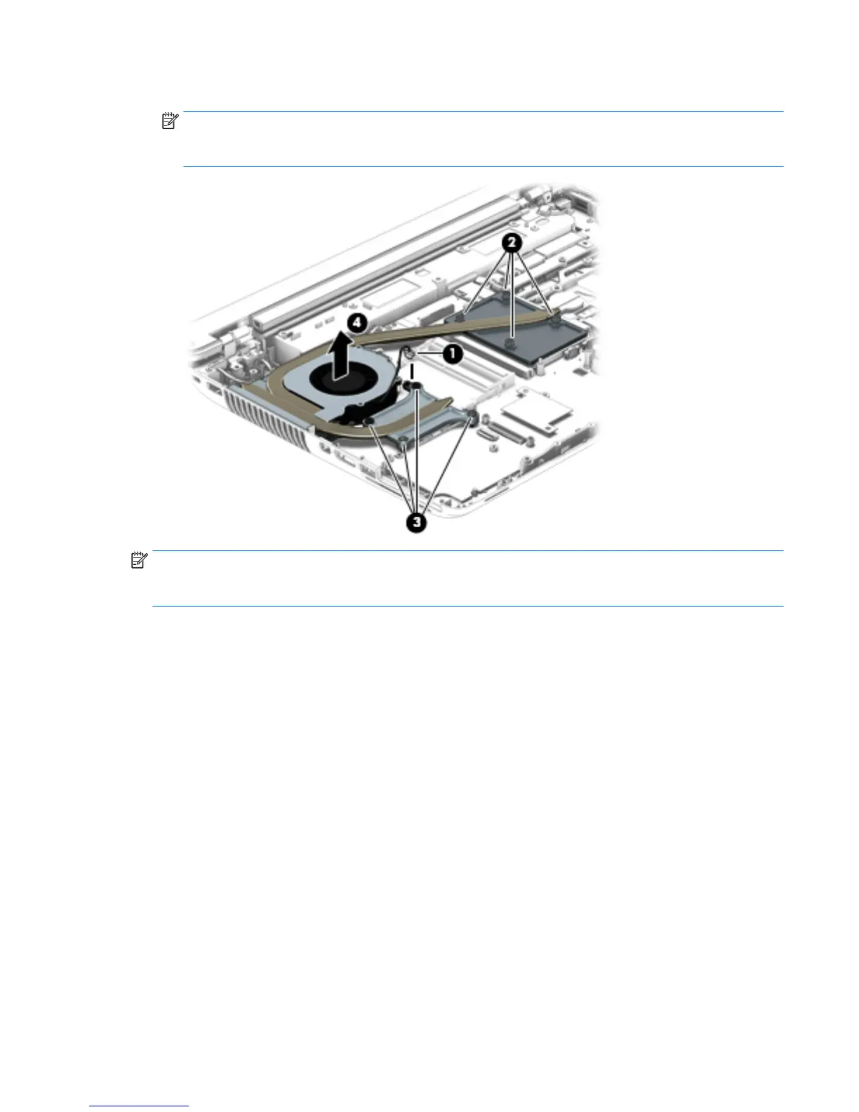 assembly and the system board components, it may be necessary to move the fan/heat sink assembly