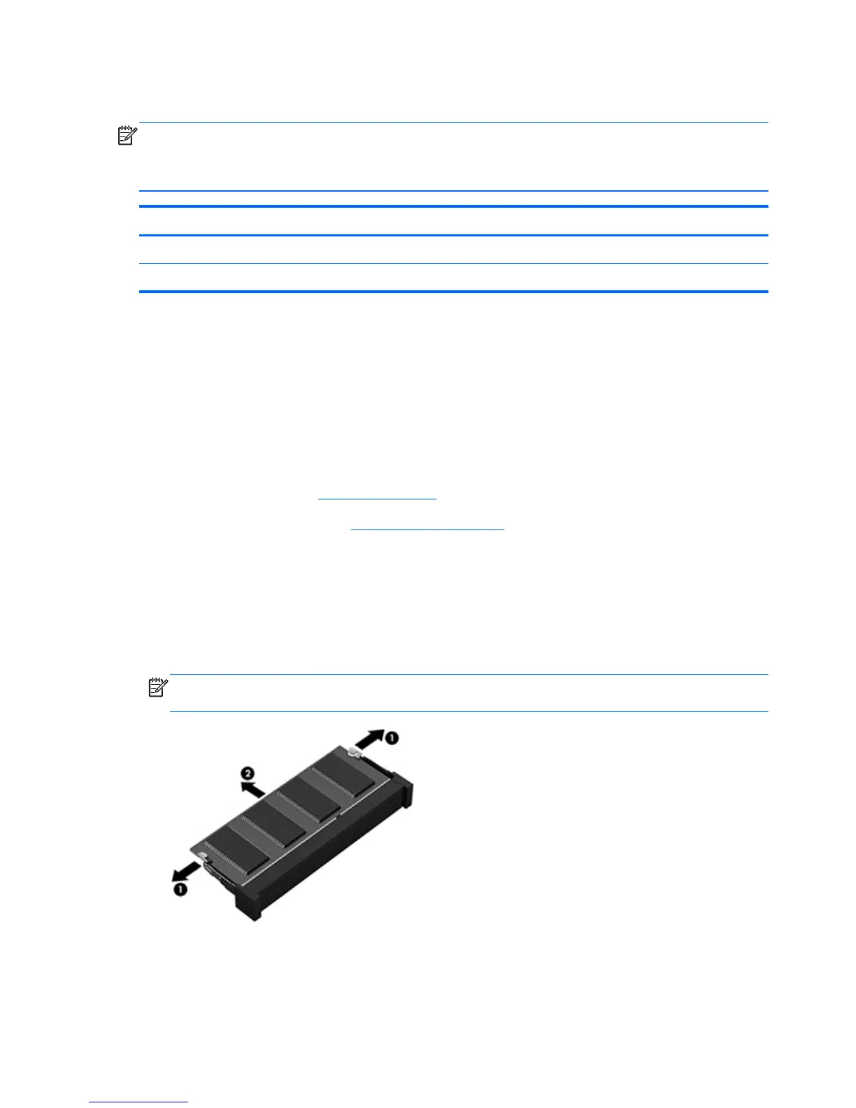 2. Remove the expansion memory module (2) by pulling the module away from the slot at an angle.