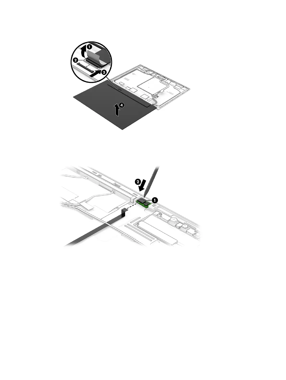 4. To remove the microphone board from the display, disconnect the cable from the reverse ZIF