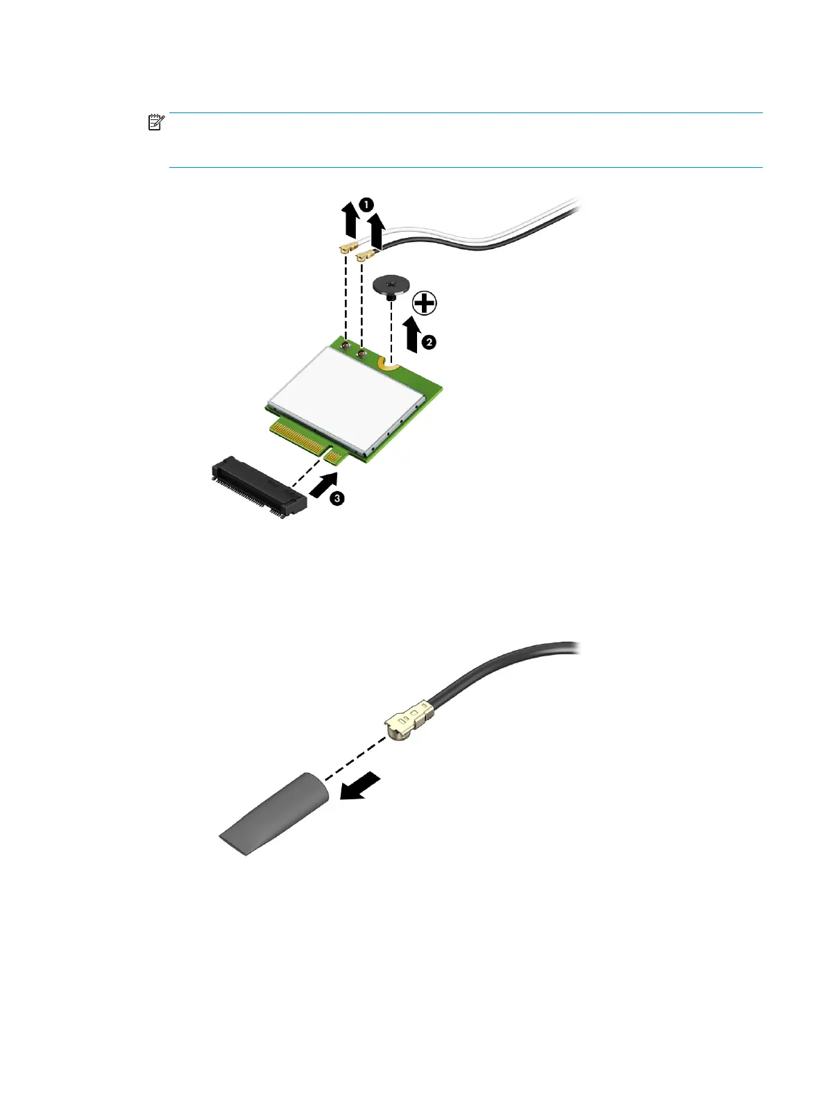 3. If the WLAN antenna is not connected to the terminal on the WLAN module, install a protective sleeve on
