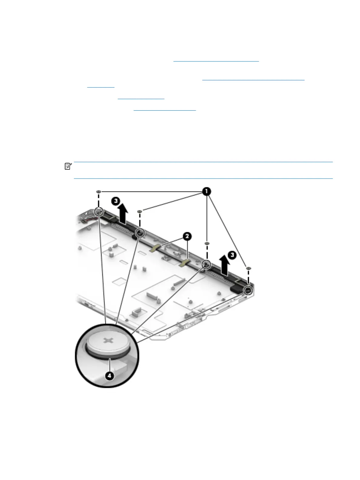 4. Remove the display panel assembly (see Display panel assembly on page 30), and then remove the