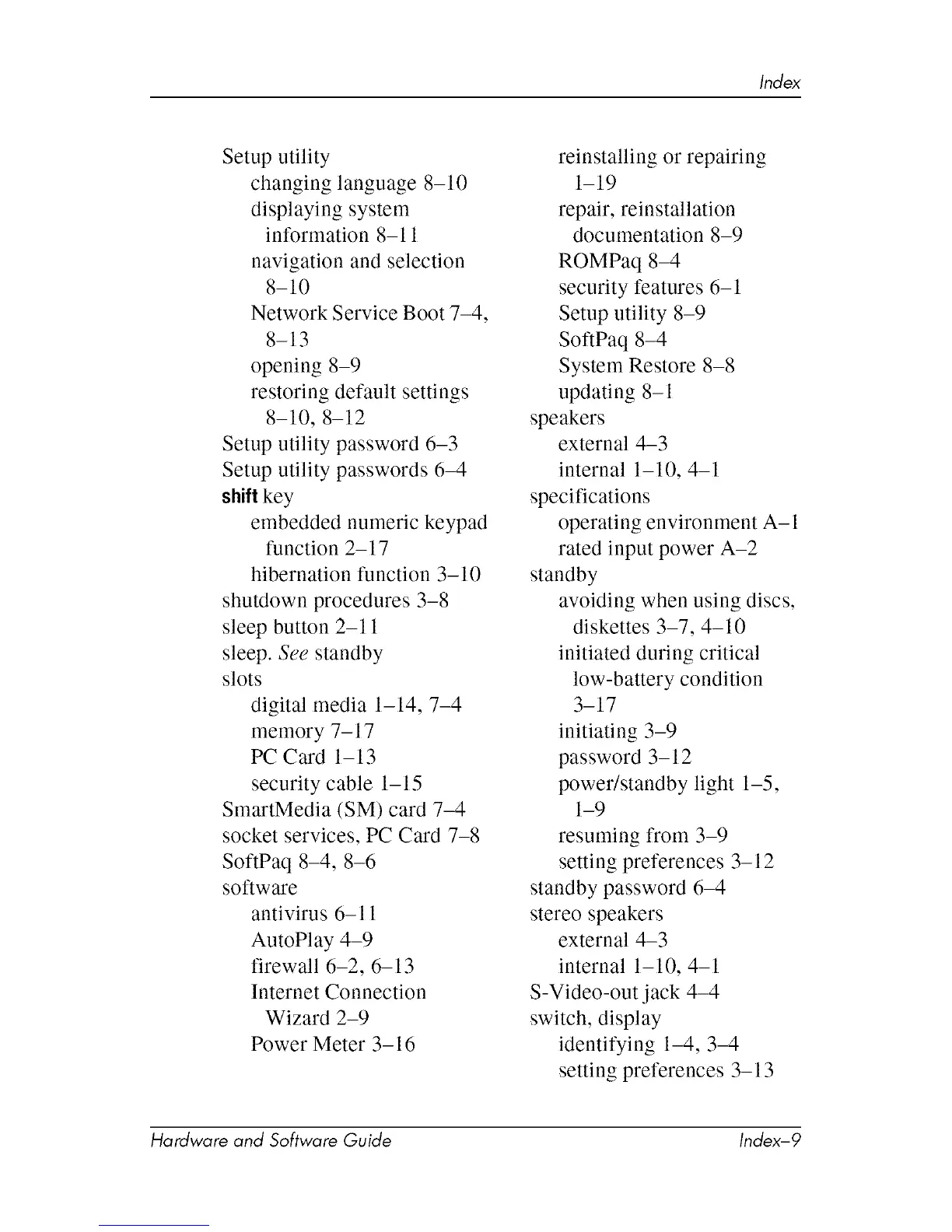 Hardware and Software Guide Index-9