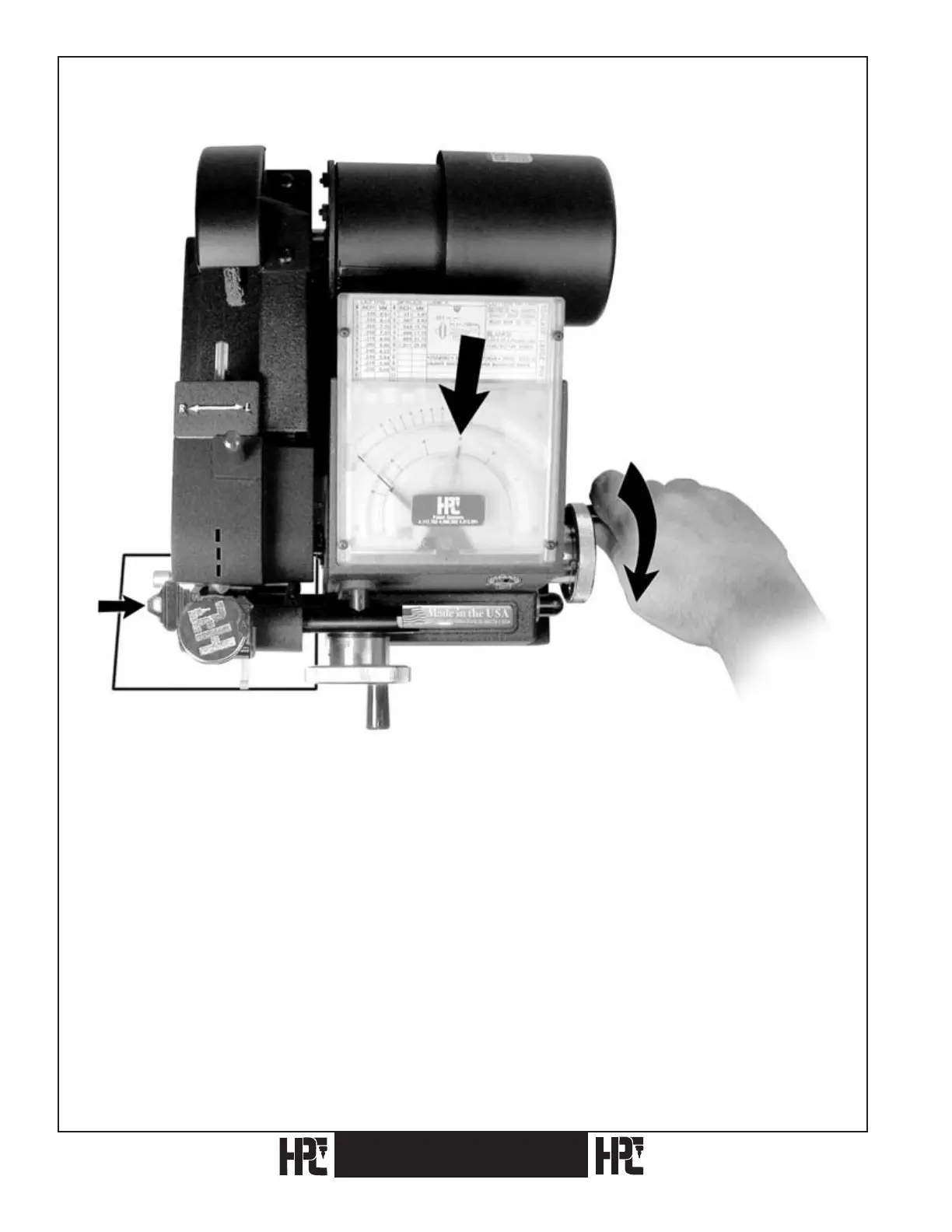 Rotate the lateral crank towards you until the space indicator