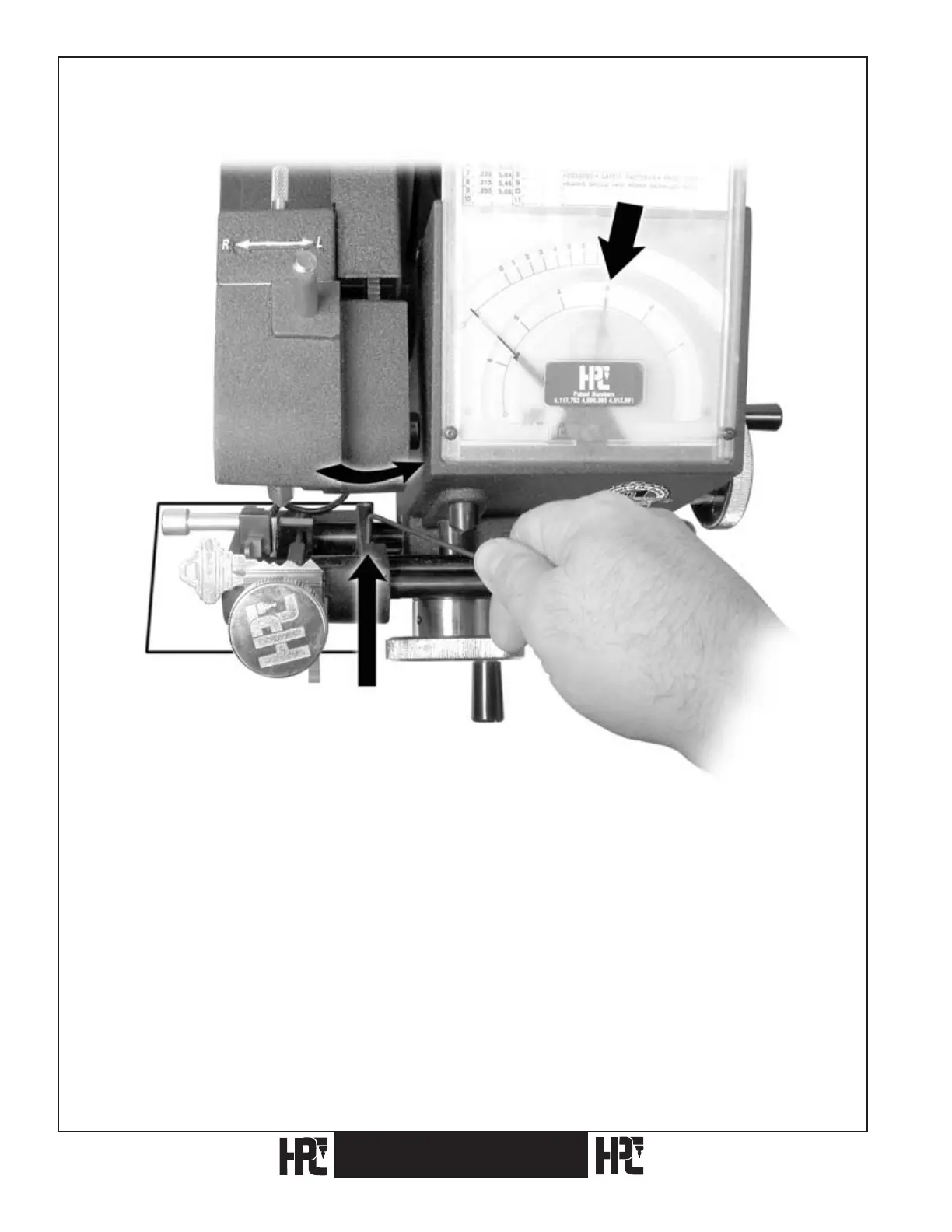 Loosen the set screw that holds the shoulder gauge turn bar onto