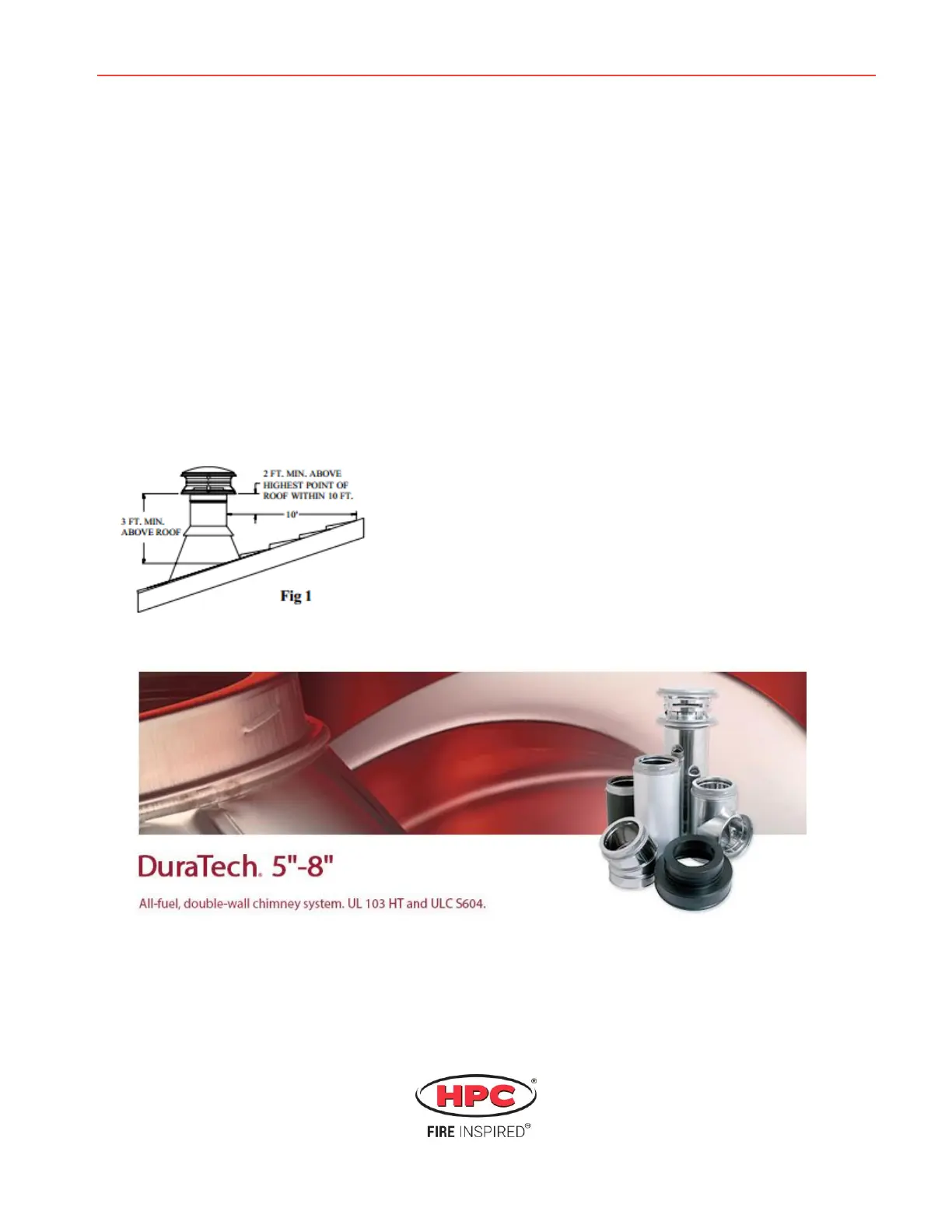 any portion of a building within ten feet.” (Fig 1) DuraTech Chimney may be installed up to 60 feet high.