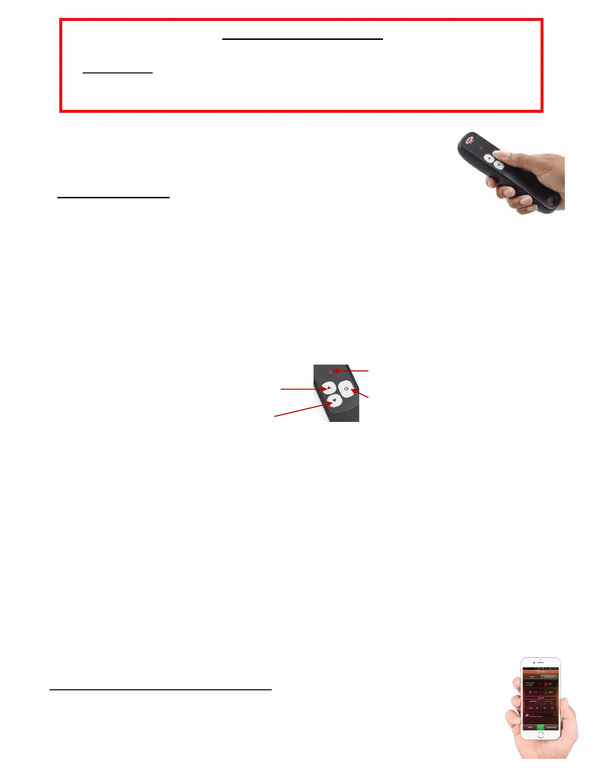 B. HIGH / LOW MODELS- HPC Remote Control, after turning ON gas to fire pit operate as follows: