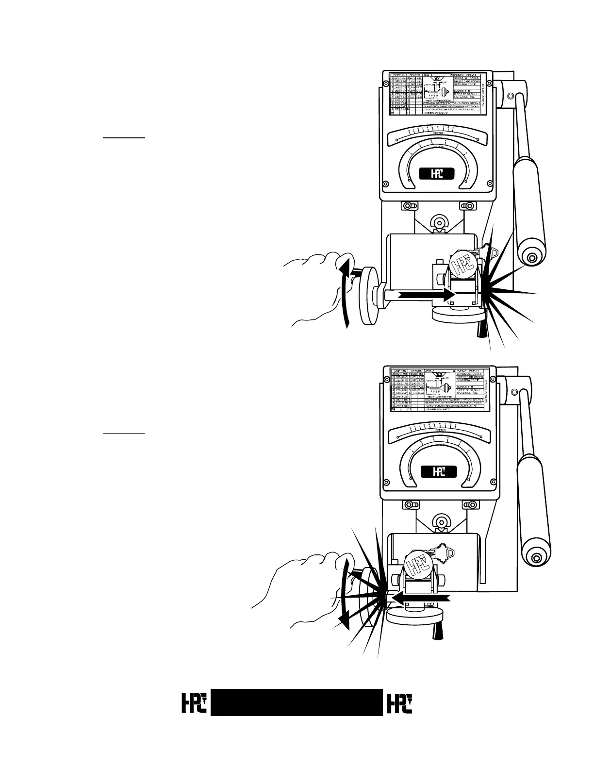 (Full left equals the centerline of the punch