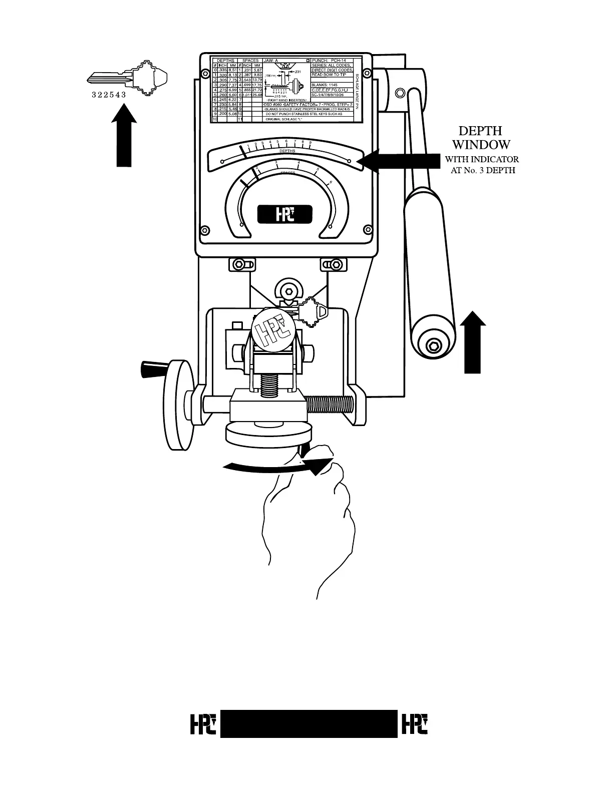 Turn the Depth Crank to move the Key Carriage to the