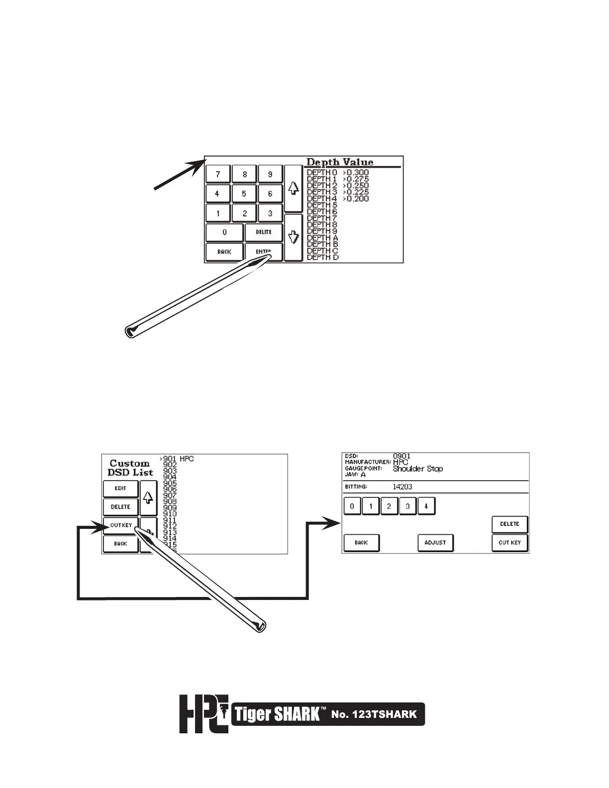 back to Section 4.1 or select the CUT KEY button from the Custom DSD List Screen as shown here. Refer to