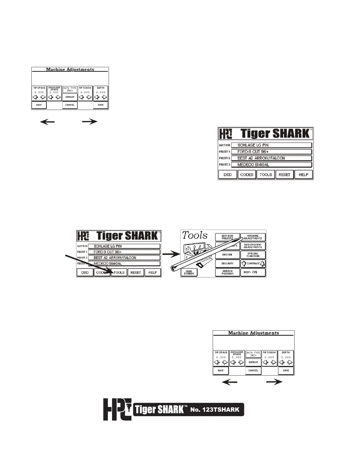 1. Select the TOOLS button from the Main Menu, then MACHINE ADJUSTMENTS.
