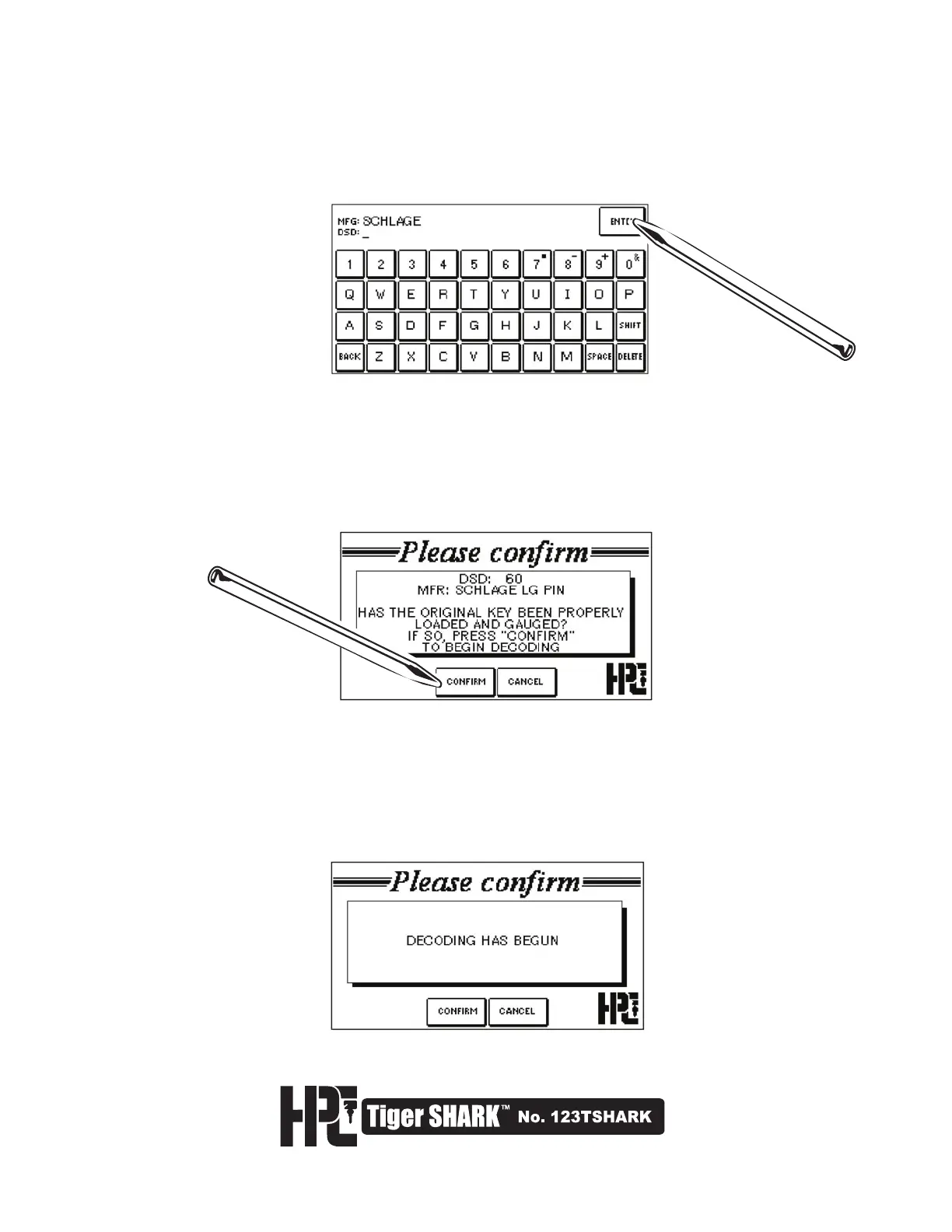 been properly loaded and gauged, select CONFIRM to decode the key.