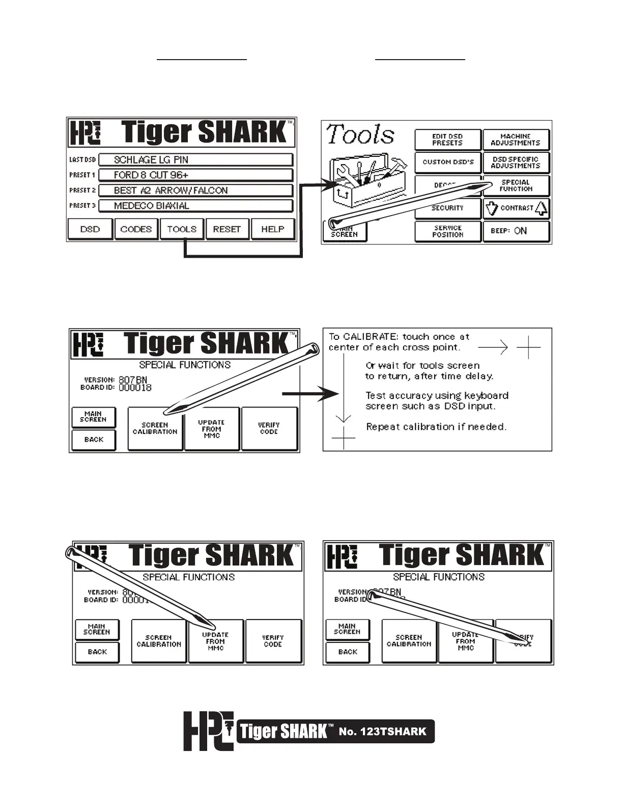 Tap or touch the 2 cross points to calibrate the screen. The display will return to the SPECIAL FUNCTION screen.