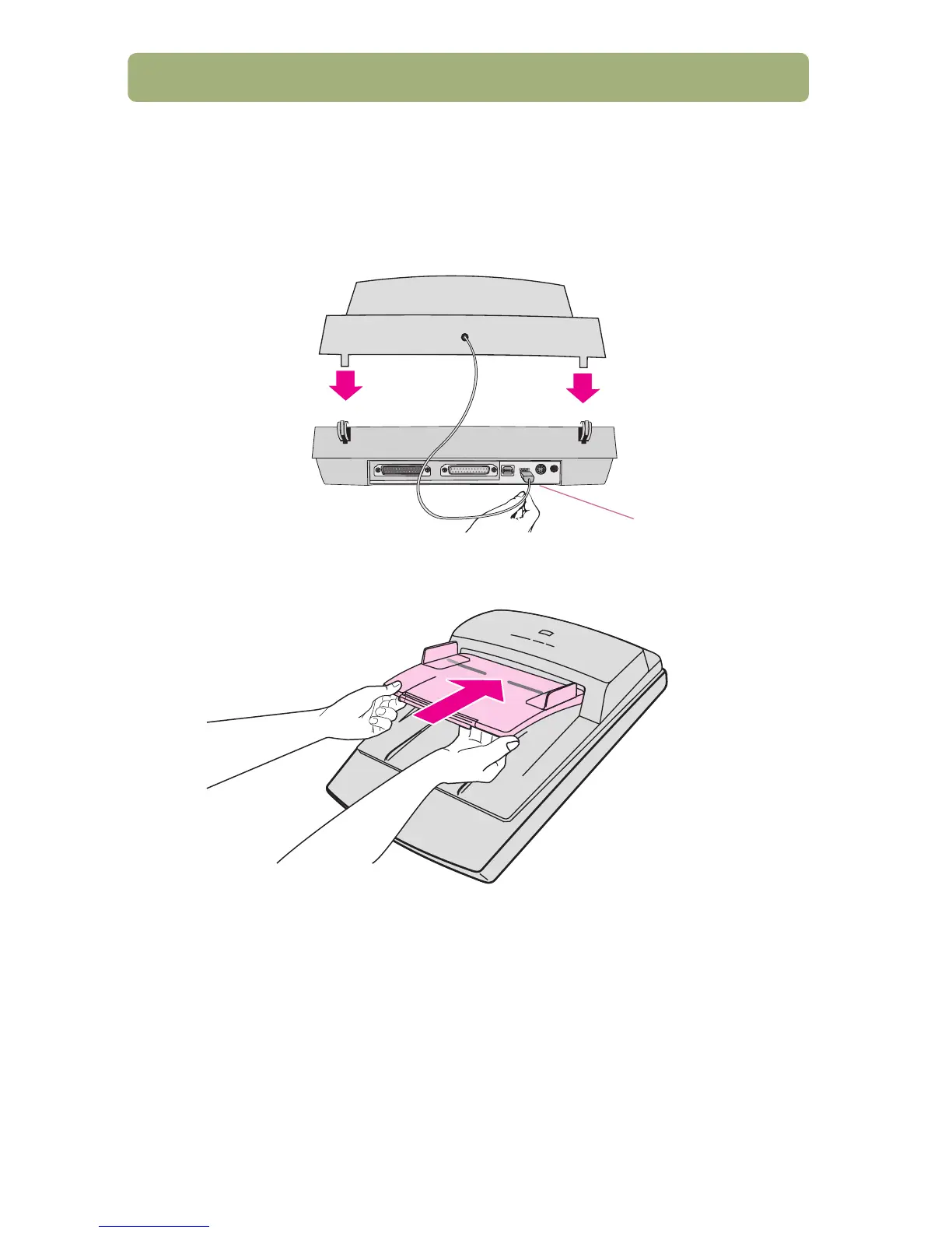 c Attach the input tray to the ADF. Insert the tabs on the input tray into the
