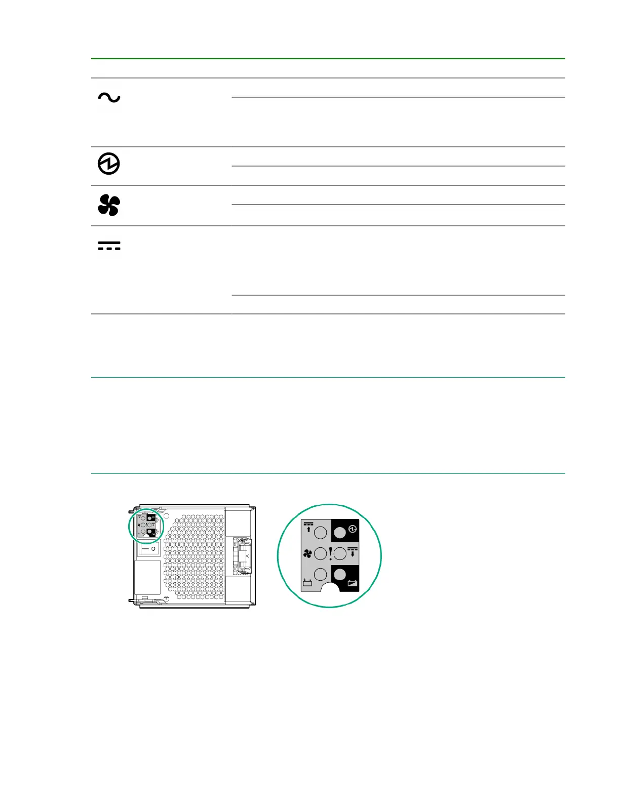 Table 34: 580W PCM LEDs, drive enclosure rear view
