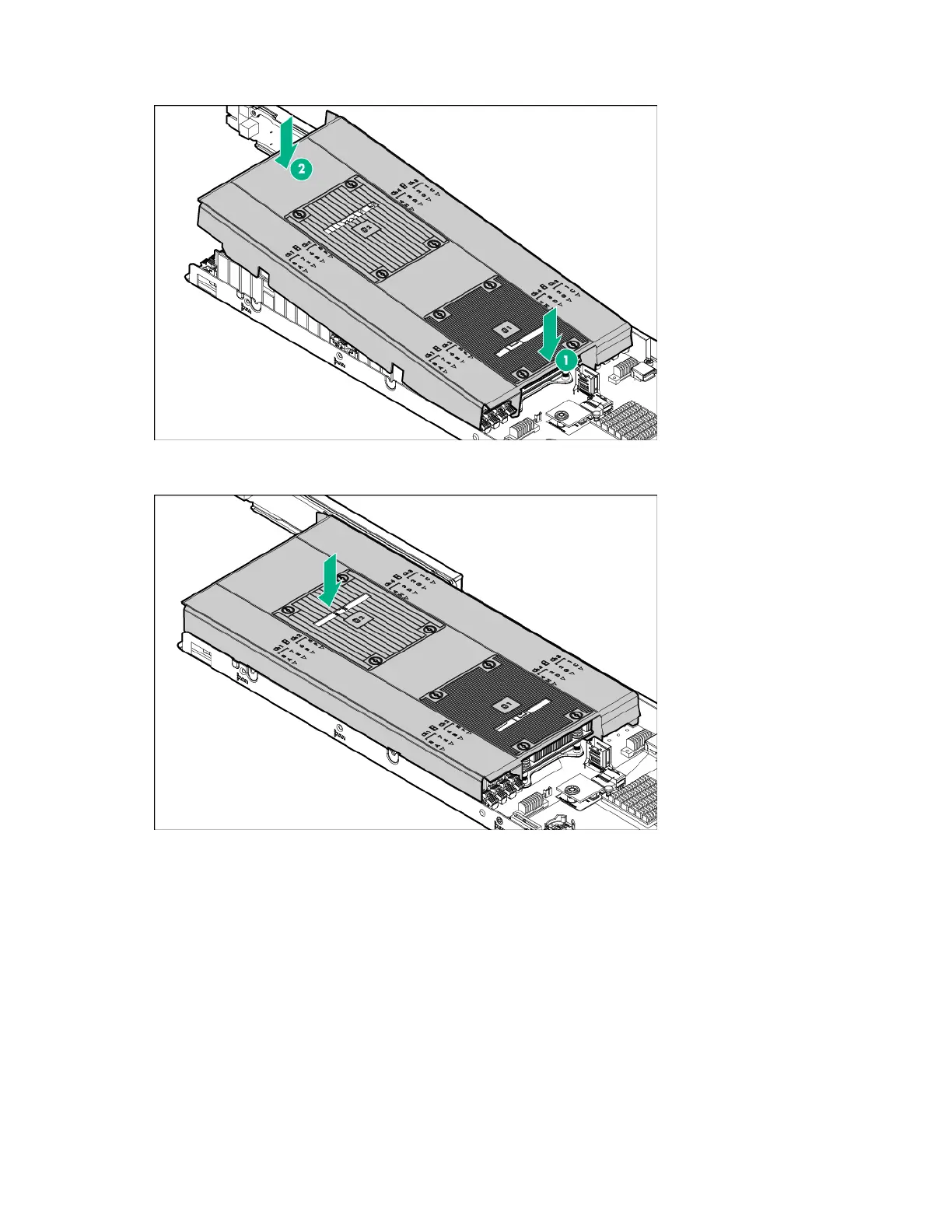 b. If a second processor and heatsink are installed, press down on the rear of the air baffle until it