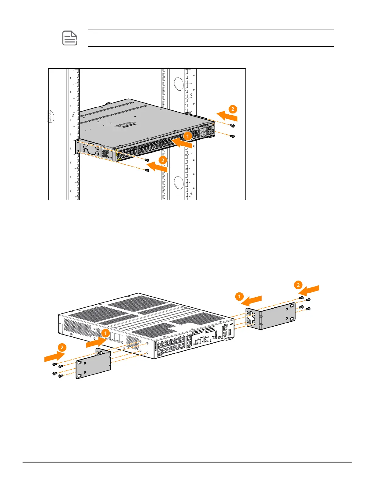 1. Attach the long rack mounting brackets to the switch with the included 10-mm M4 screws.
