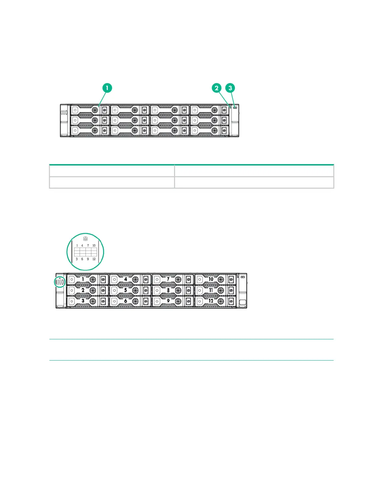 Disk drives mount in bays on the front of the enclosure. Bays are numbered sequentially from