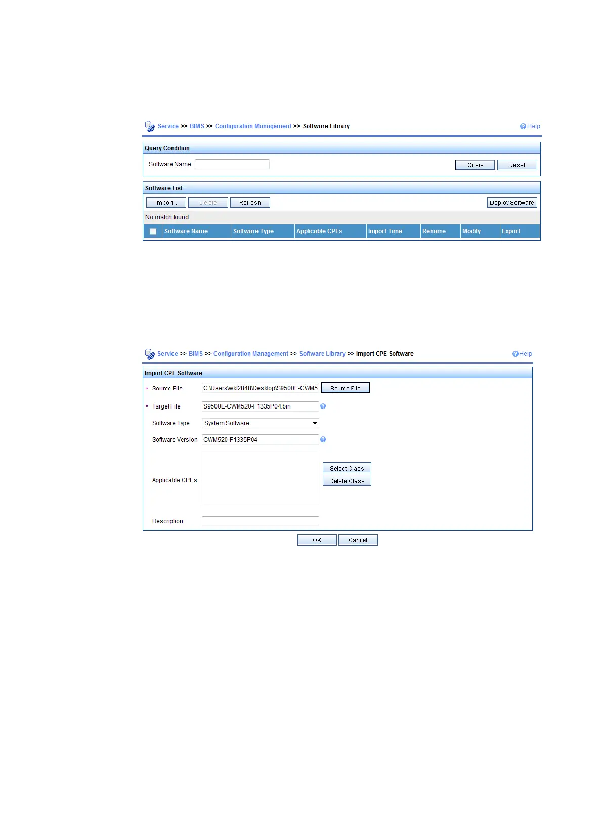 Figure 15 Importing CPE software