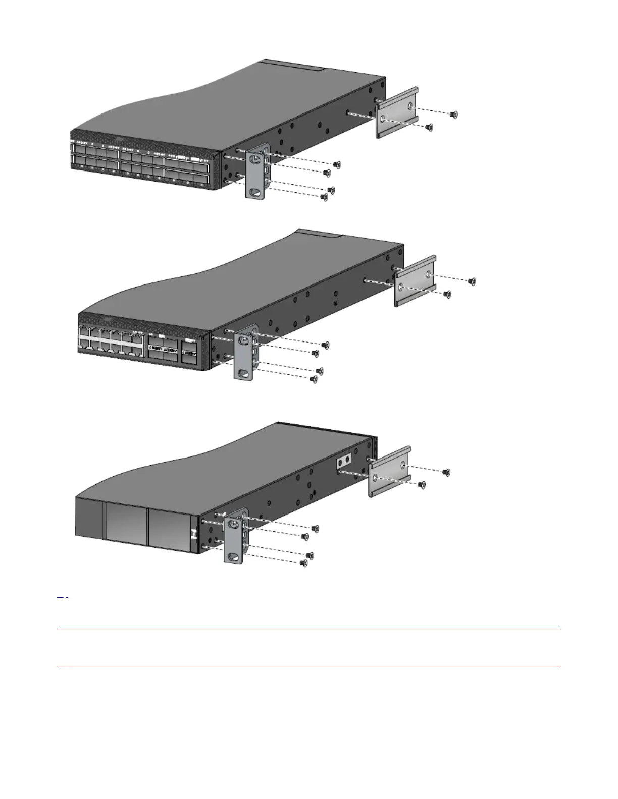 Attaching the mounting brackets and chassis rails to an HPE 5710-54HF switch(mounting brackets installed near the port side)