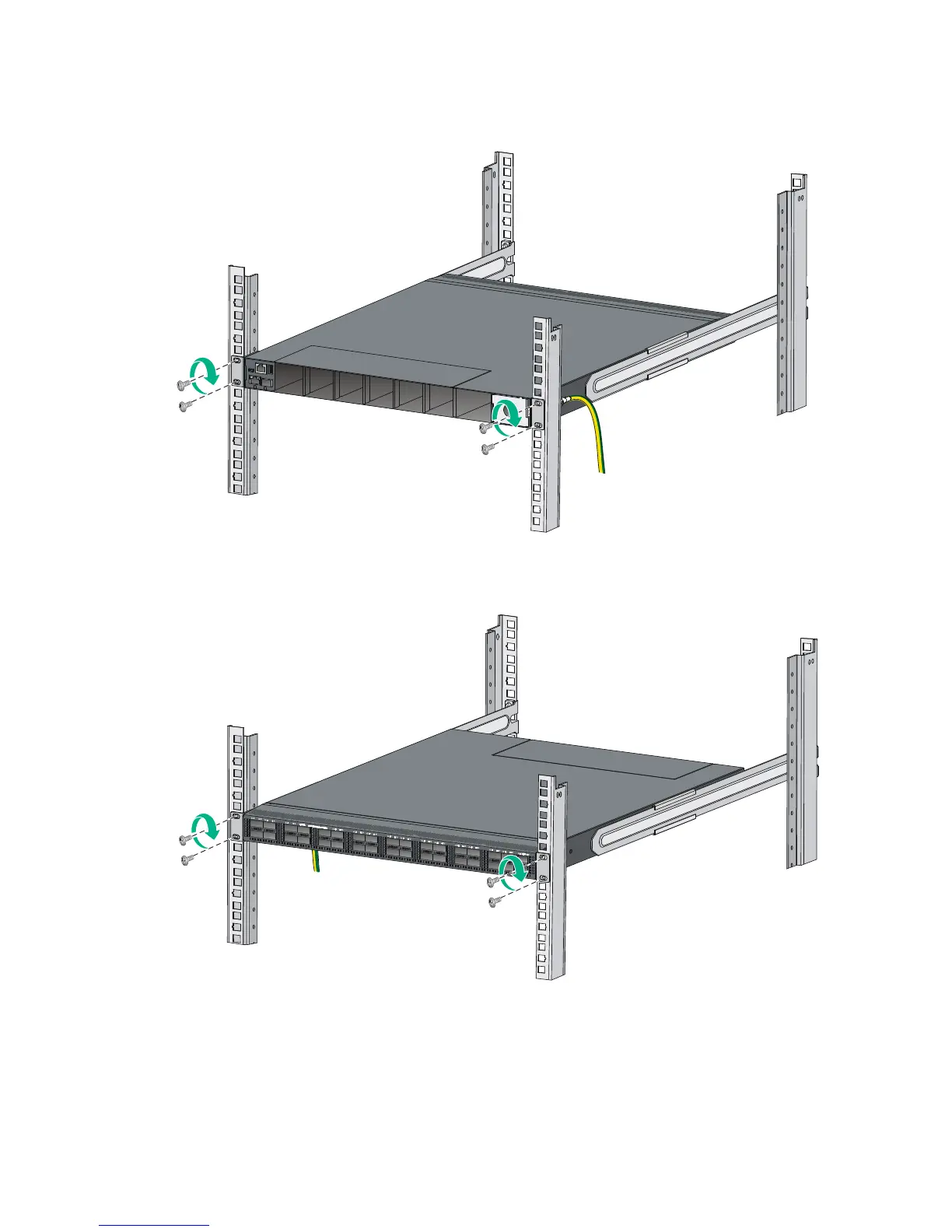 Figure 14 Mounting the HPE FlexFabric 5950 32QSFP28/HPE FlexFabric 5950 32QSFP28 TAA