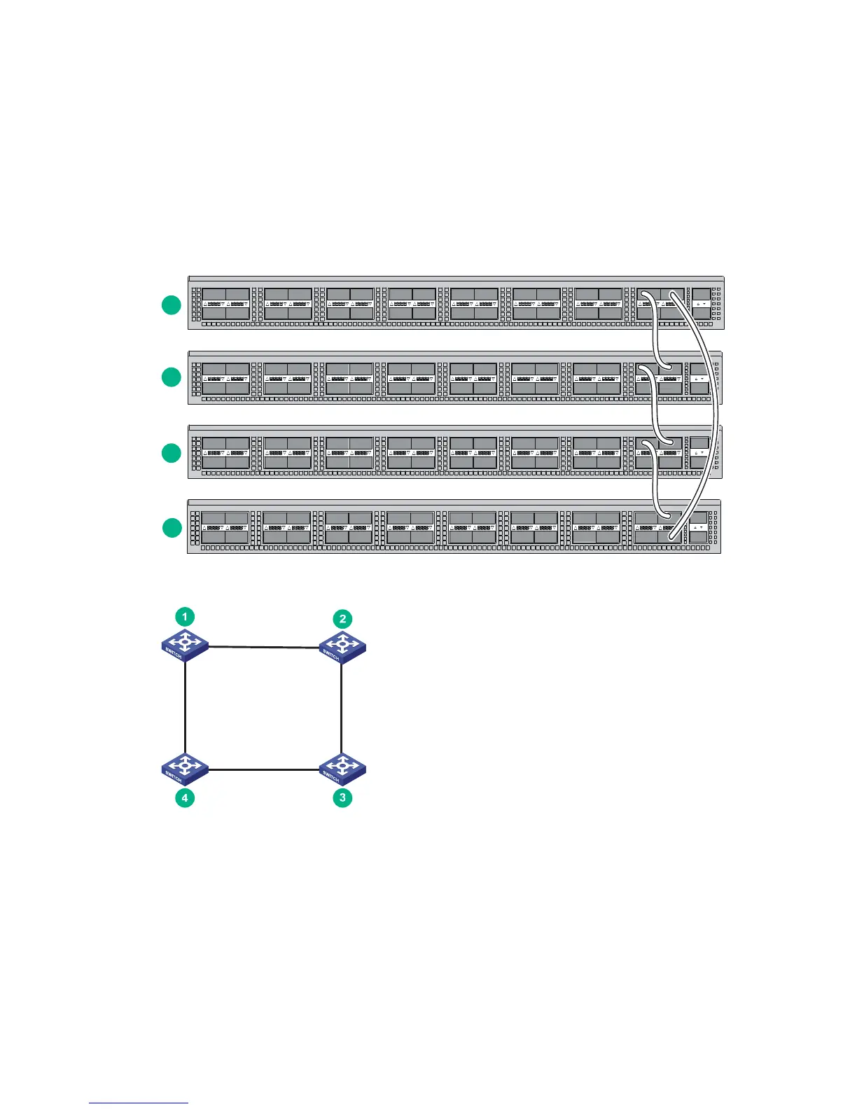ows an example for connecting four top of rack IRF member switches by using QSFP28