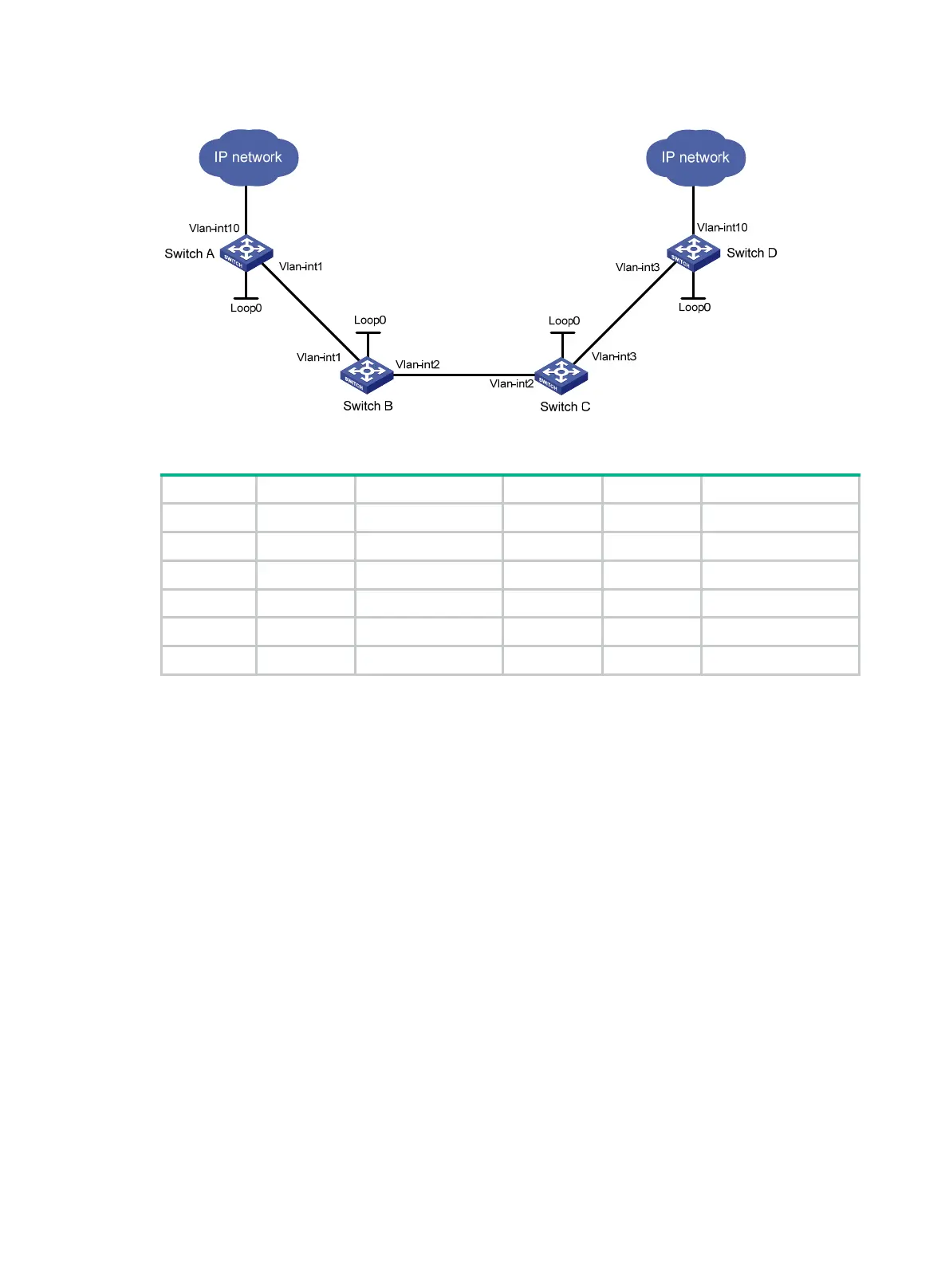 Switch B Loop0 2.2.2.9/32 Switch C Loop0 3.3.3.9/32
