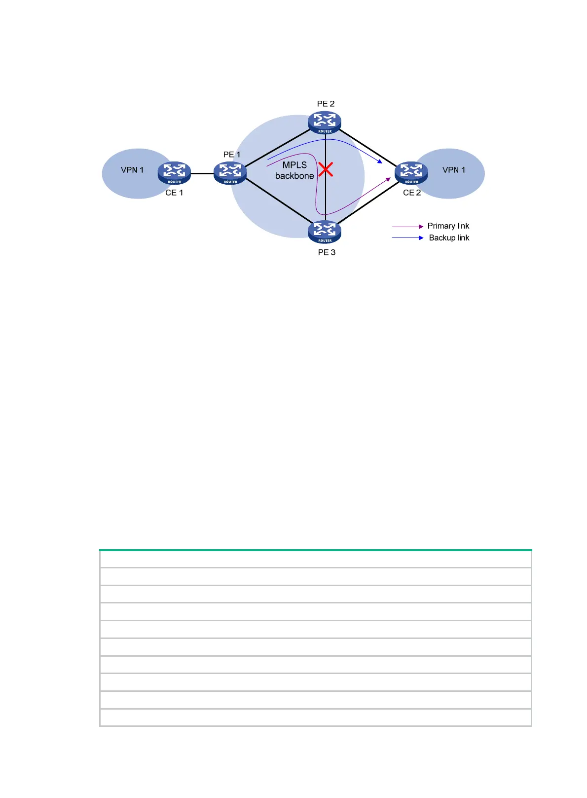 routes are destined for VPN 1 connected to CE 2), PE 2 uses the VPNv4 route as the primary link,