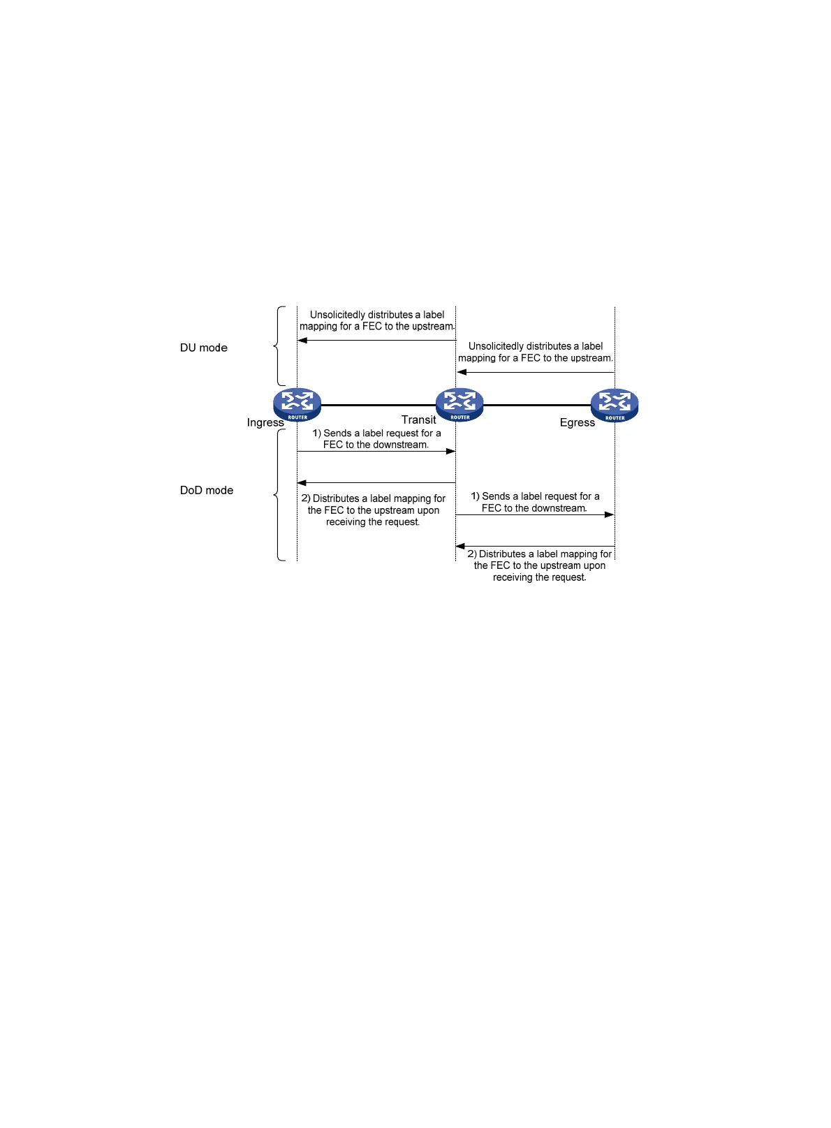 downstream LSR. In DoD mode, when an LSR (Transit) receives a label request for an FEC
