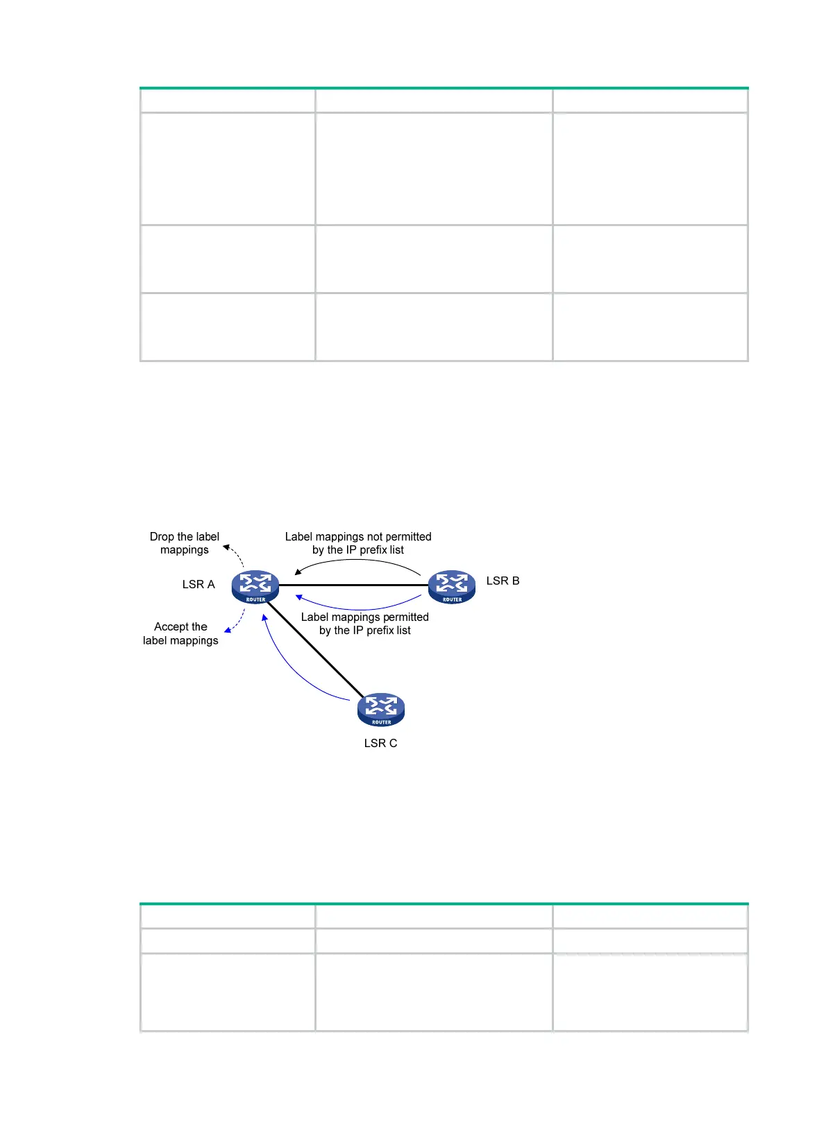 696HFigure 16, LSR A uses an IP prefix list to filter label mappings from LSR B, and it does