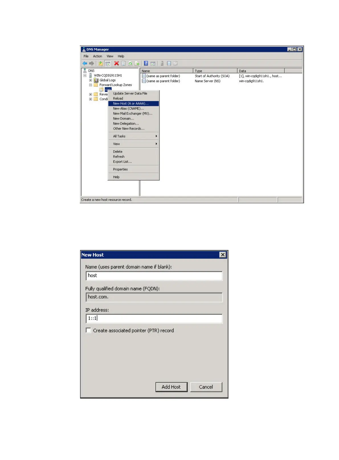 a. On the page that appears, enter host name host and IPv6 address 1::1.