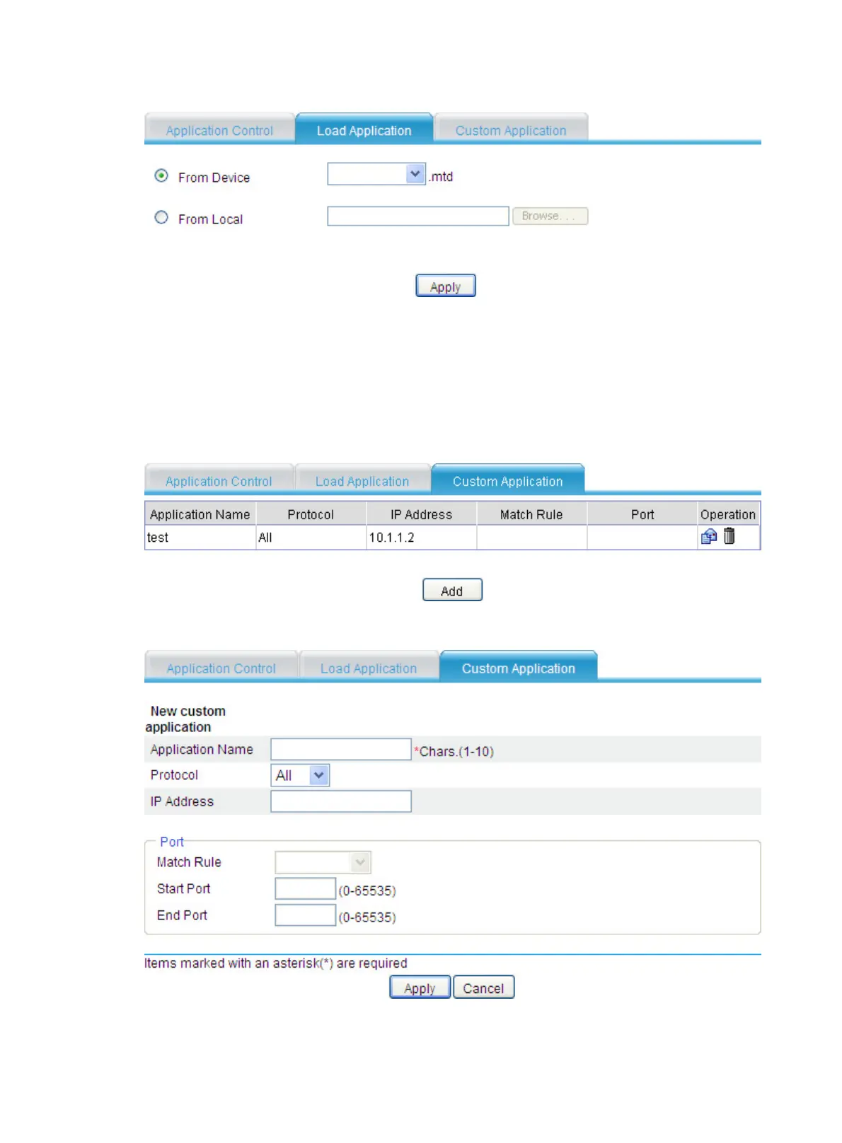 Select Security Setup > Application Control from the navigation tree, and then select the Custom