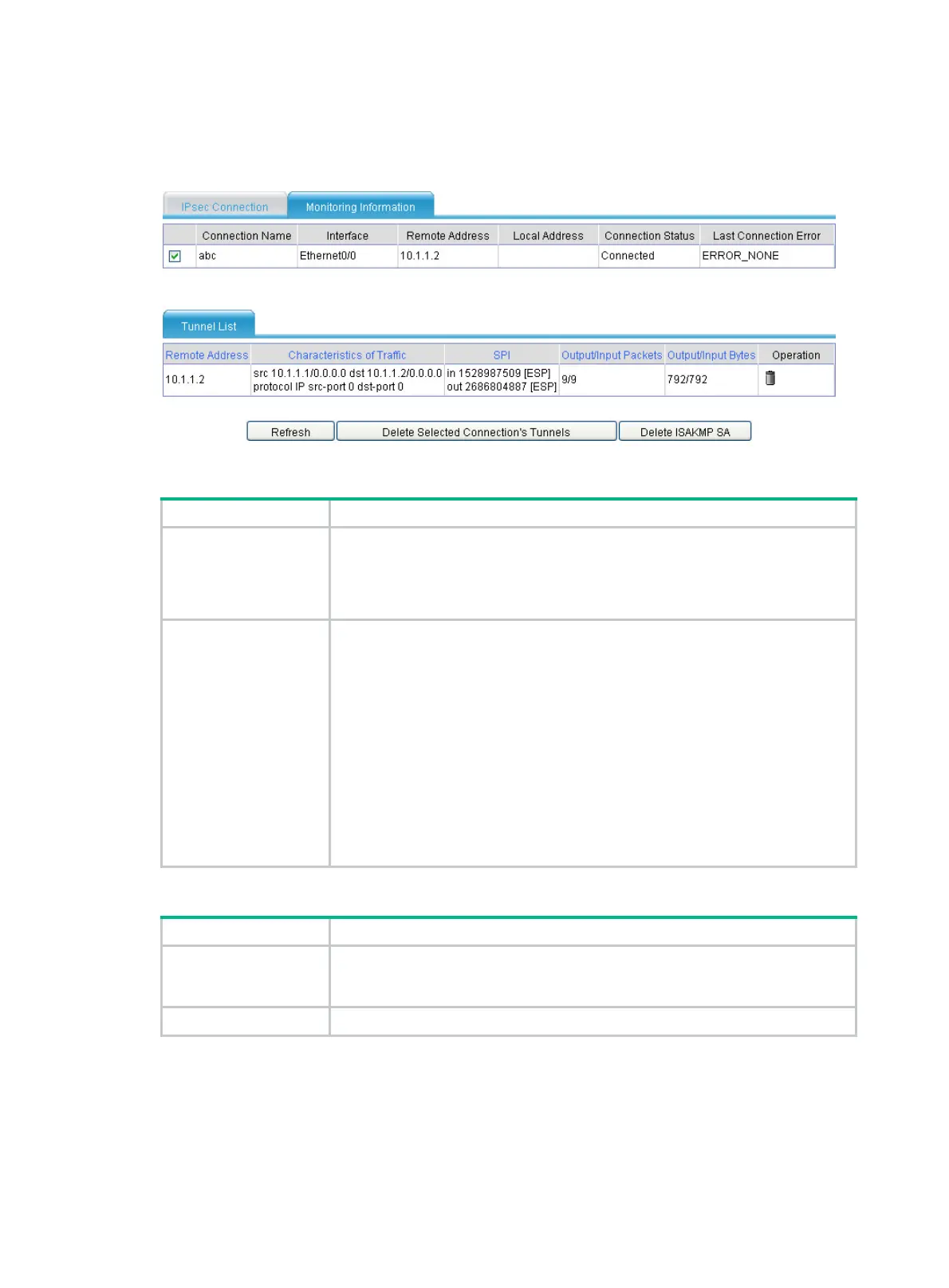 4. To delete all ISAKMP SAs of all IPsec connections, click Delete ISAKMP SA. To delete IPsec