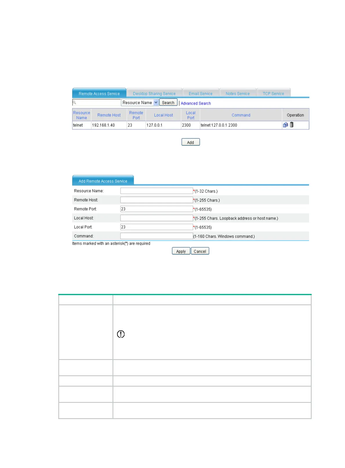 Remote Port Specify the port number that the remote host uses for the remote access service.