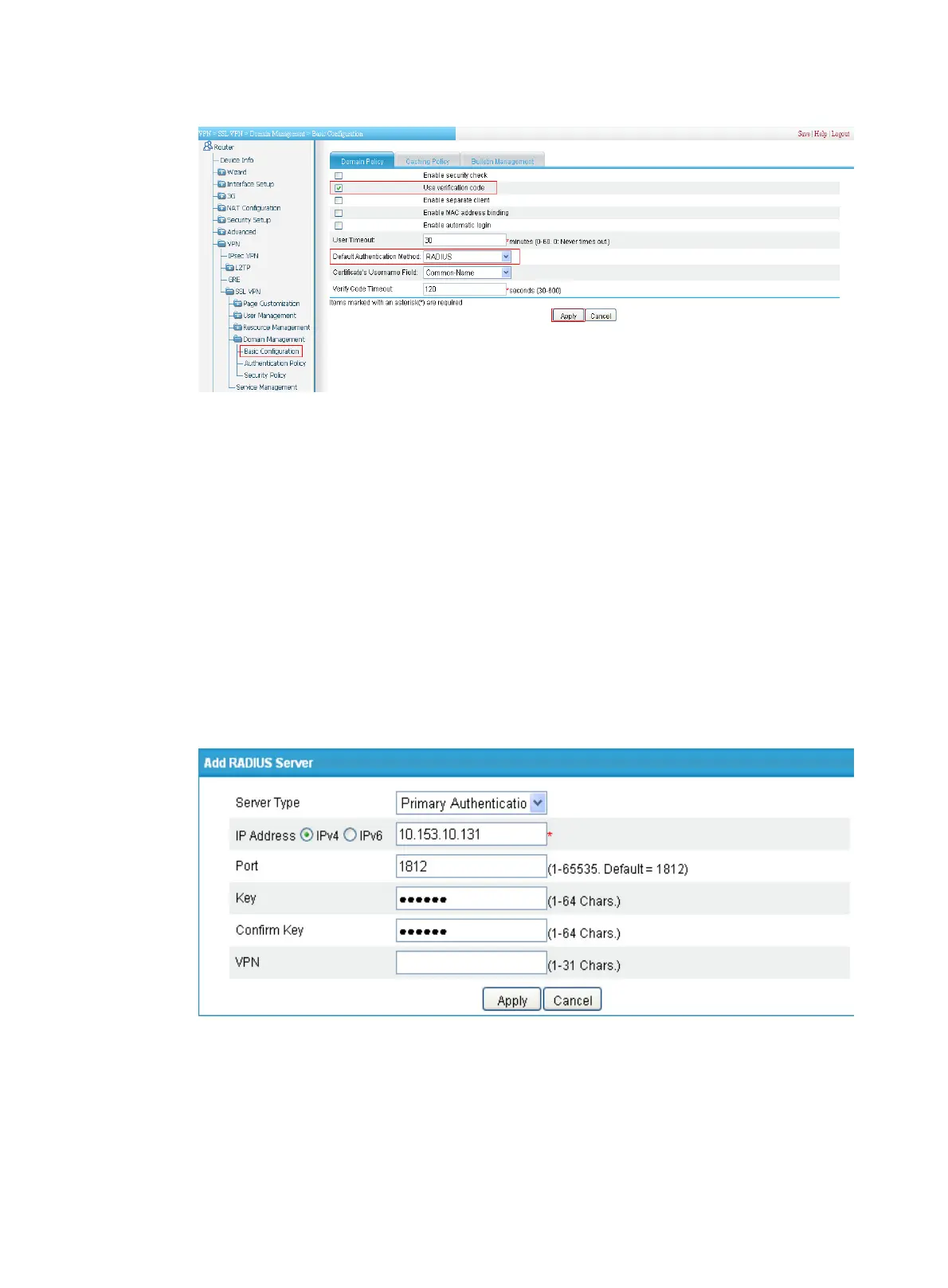as the server type, select IPv4 and enter IP address 10.153.10.131, enter port number 1812,
